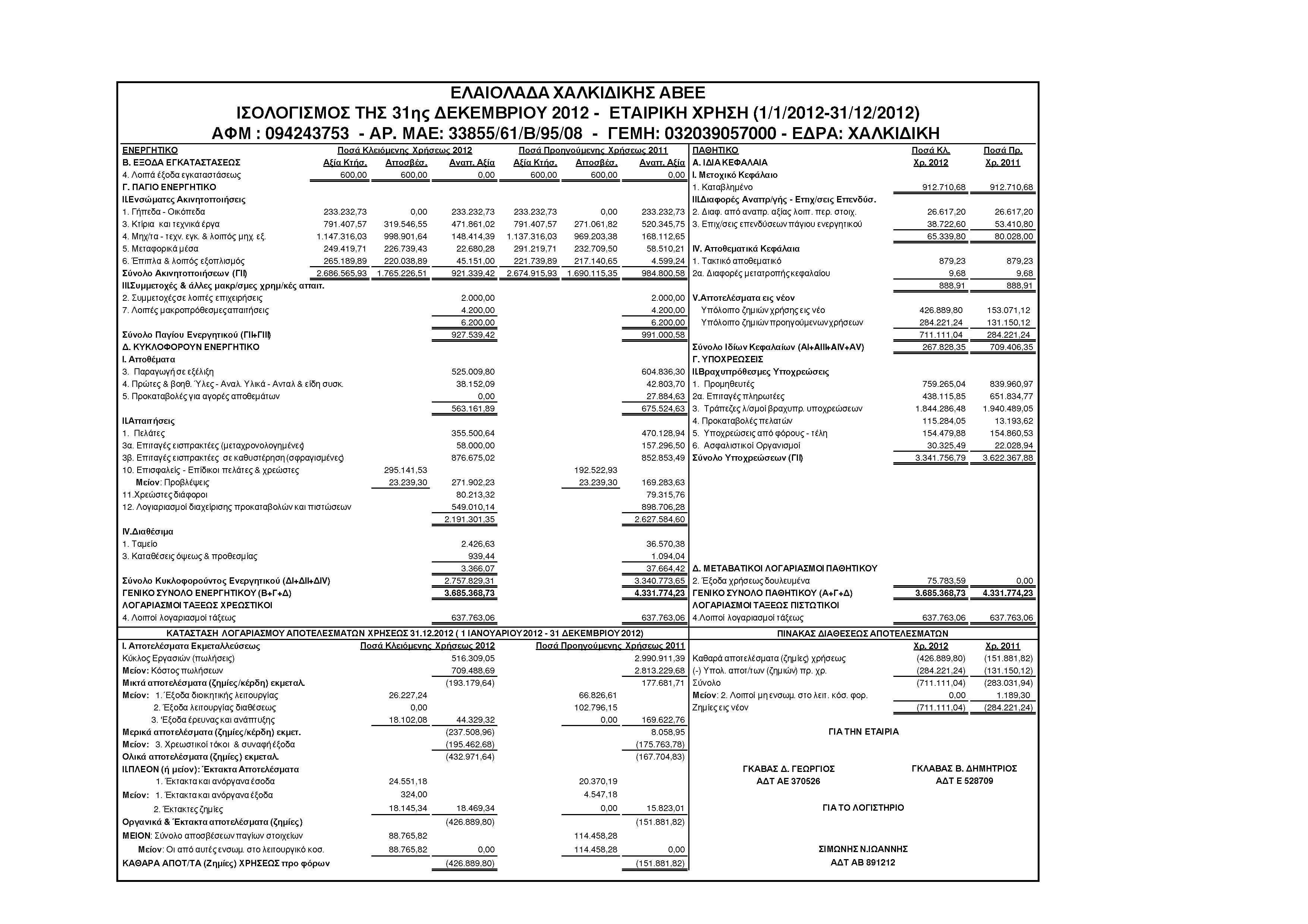 Ισολογισμός Χρήσης 2012