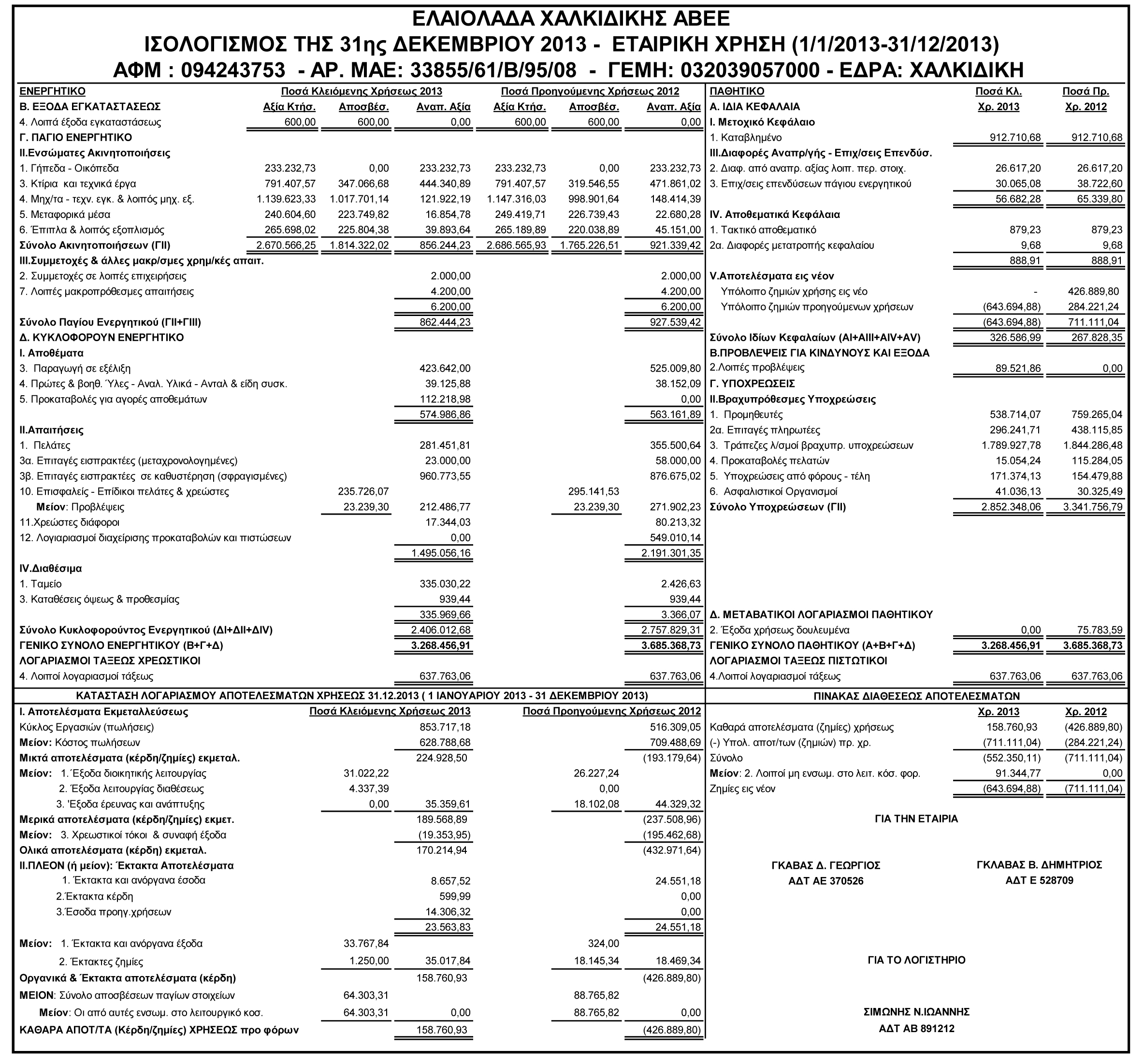 Ισολογισμός Χρήσης 2013